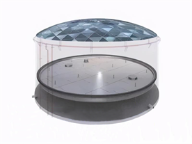 全接液內(nèi)浮盤指內(nèi)浮盤本體漂浮在液體中有一定的浸液高度,浮力單元之間及與各部件的連接部位有可靠的密封措施,形成底部全域浸入液體的內(nèi)浮盤。全浸液內(nèi)浮盤包括箱體式、浮艙式、玻璃鋼復合材料式、全焊接蜂巢芯式及其他形式的裝配式全浸液內(nèi)浮頂。全接液內(nèi)浮盤適用于儲罐內(nèi)直徑5m~48m。